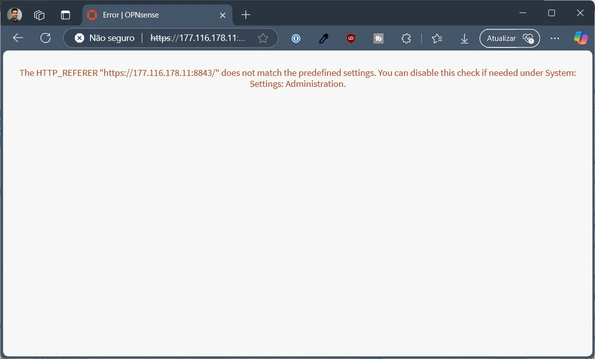 Não consigo acessar o firewall externamente, apresenta erro de HTTP_REFERER